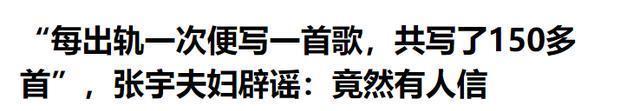 有人煞有介事地说,张宇每出轨一次,十一郎就会写一首歌, 而且还言之凿凿地说,两人一共写了150首歌,这不就等于说他们出轨了150次吗? 这都已经不是八卦了,完完全全就是在诽谤在造谣, 面对这些荒谬的传闻,夫妻俩一开始选择了沉默。